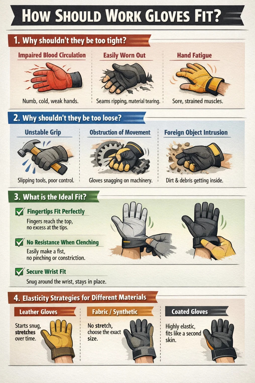 Si carpi area nimis laxa est, ligna astulae, arenae, vel calculi in chirothecas facile ingredi possunt, cum dolore exasperantur.