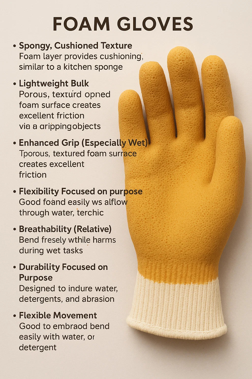 Spuma bona chirothecae manu ac digitis facile flectunt.