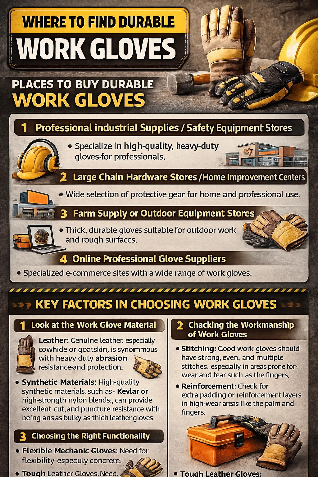 Si caestus ad laborem asperum opus est, ut ligna, ferramenta acuta aut foris laborantes, haec loca considera.