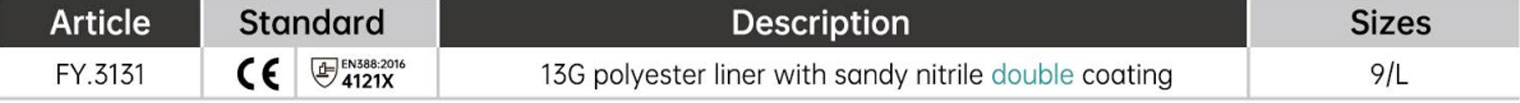 Duplex nitrile arenosum palmam metam efficiens praebet oleum altum resistentiam et bonum tenaci in siccis, humidis et oleosis conditionibus.